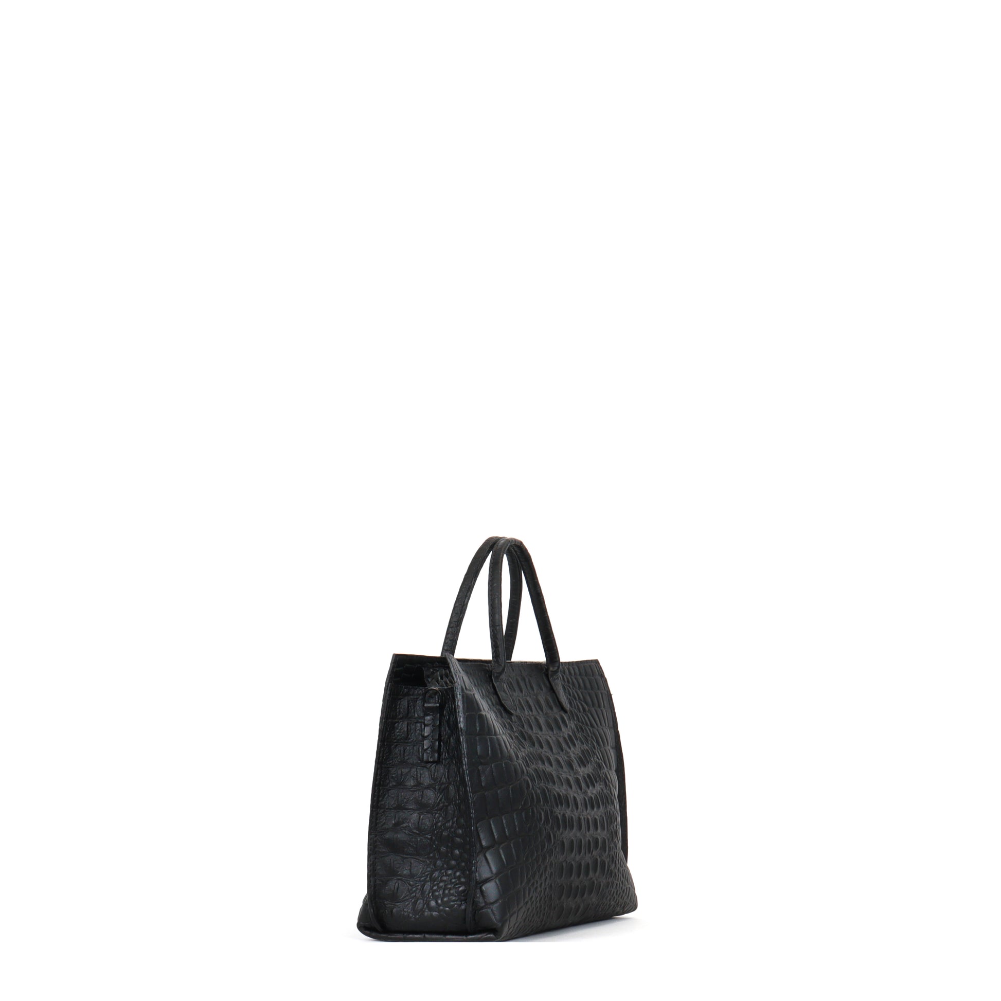 DAY BAG MATTE BLACK EMBOSSED CROC