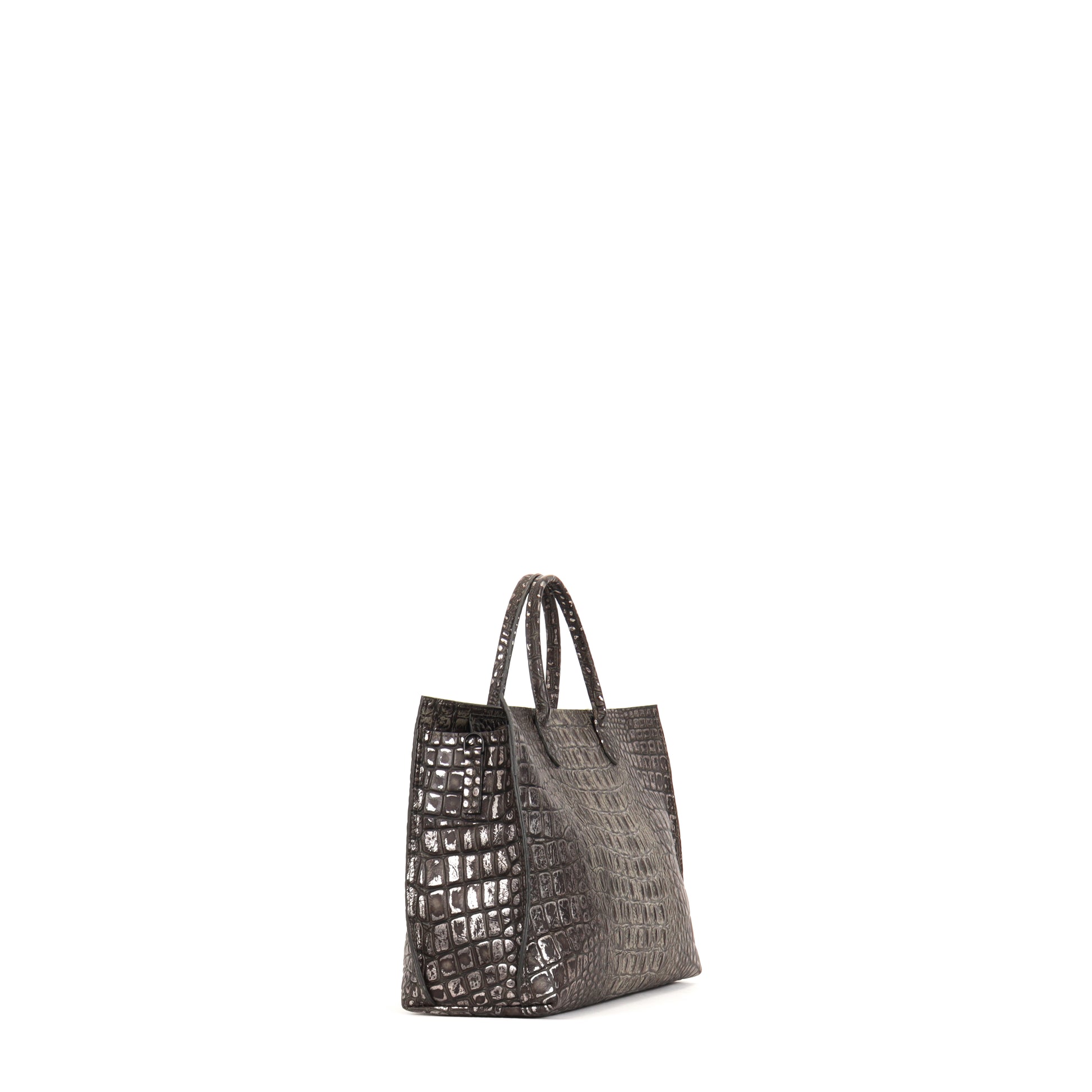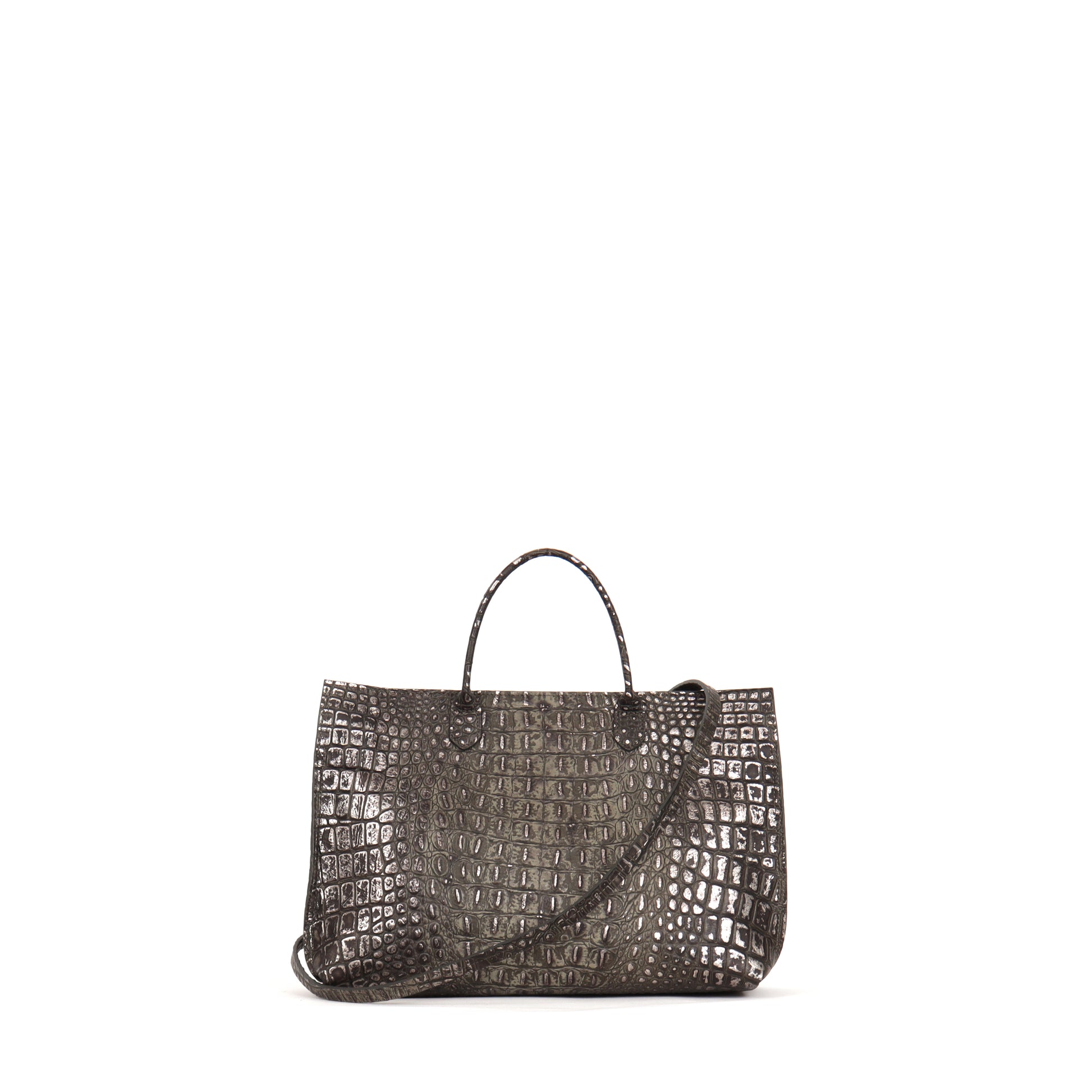 DAYBAG SMOKED SILVER TIPPED EMBOSSED CROC
