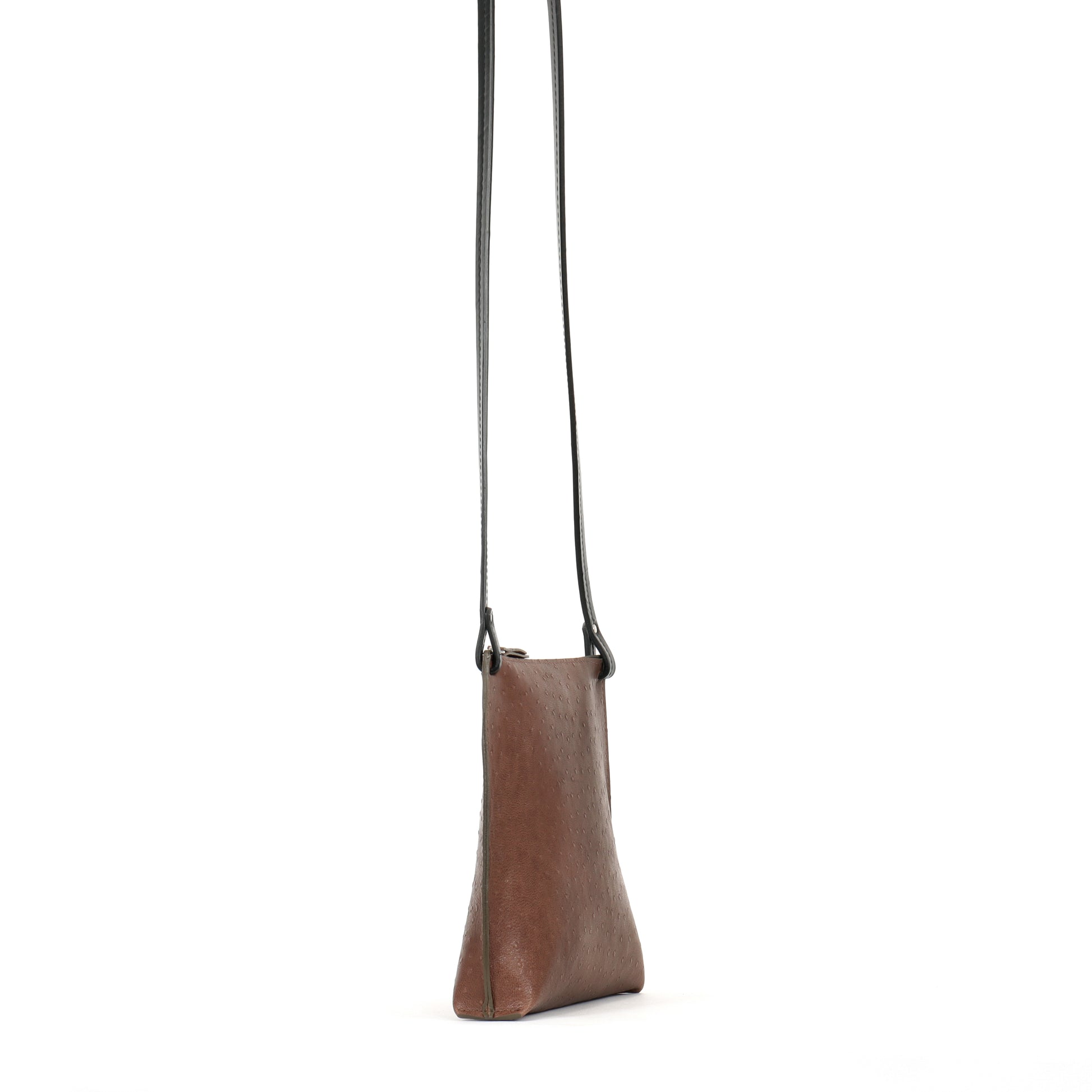 LARGE STRAPPY POUCH BROWN EMBOSSED OSTRICH