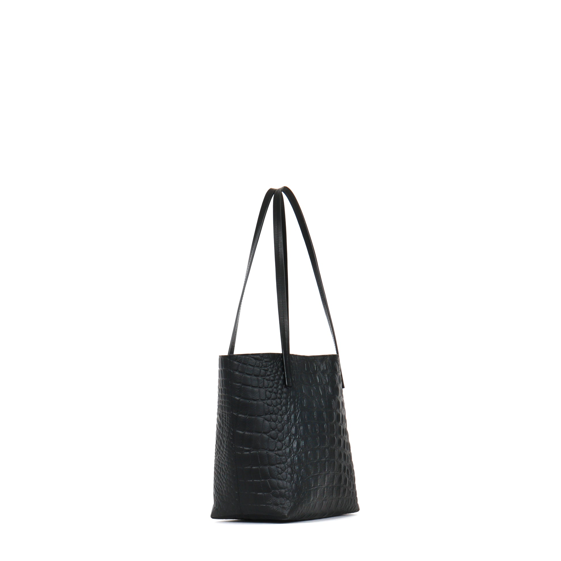 MINI ESSENTIAL TOTE MATTE BLACK EMBOSSED CROC