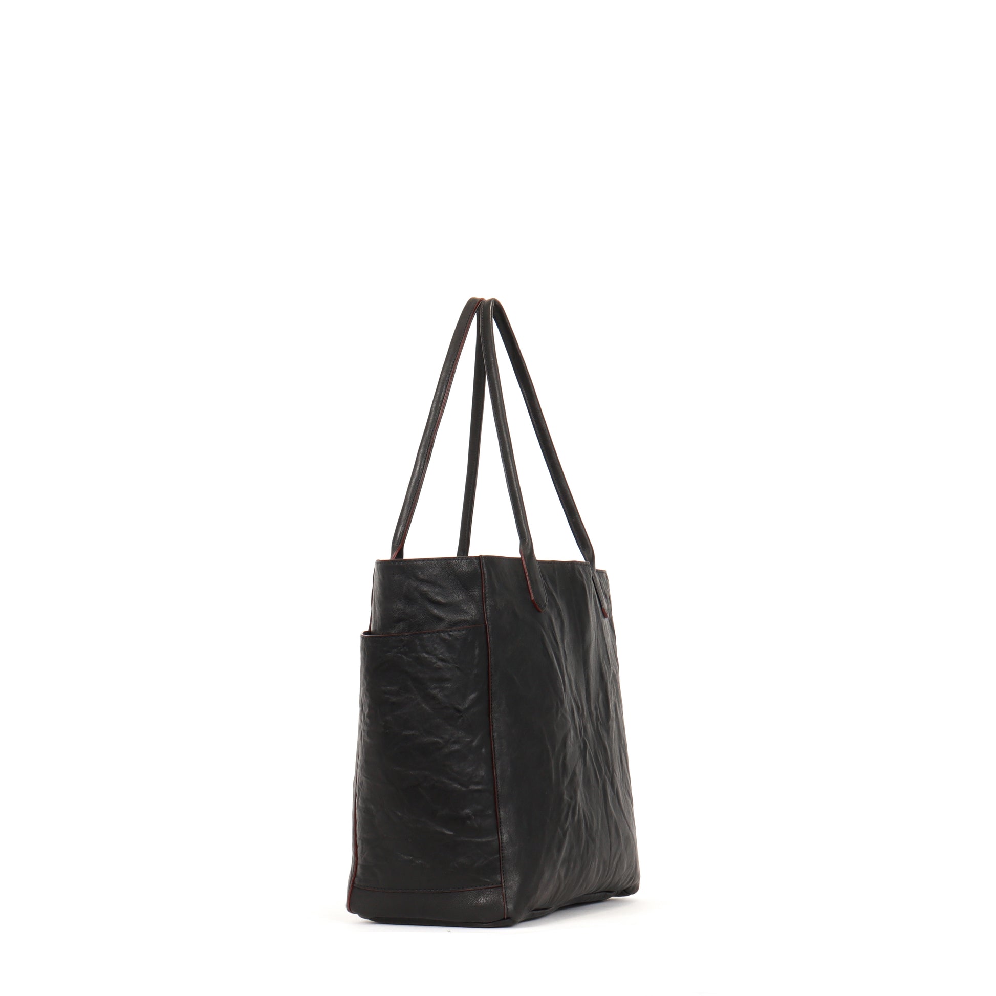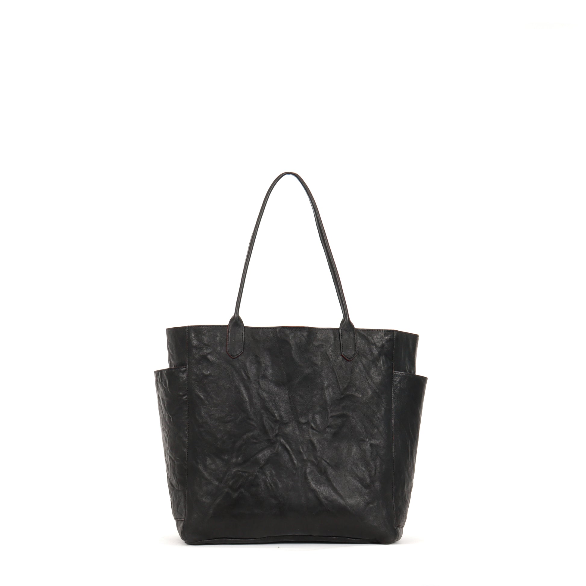 SLOUCHY POCKET TOTE BLACK RUMPLED SHEEPSKIN