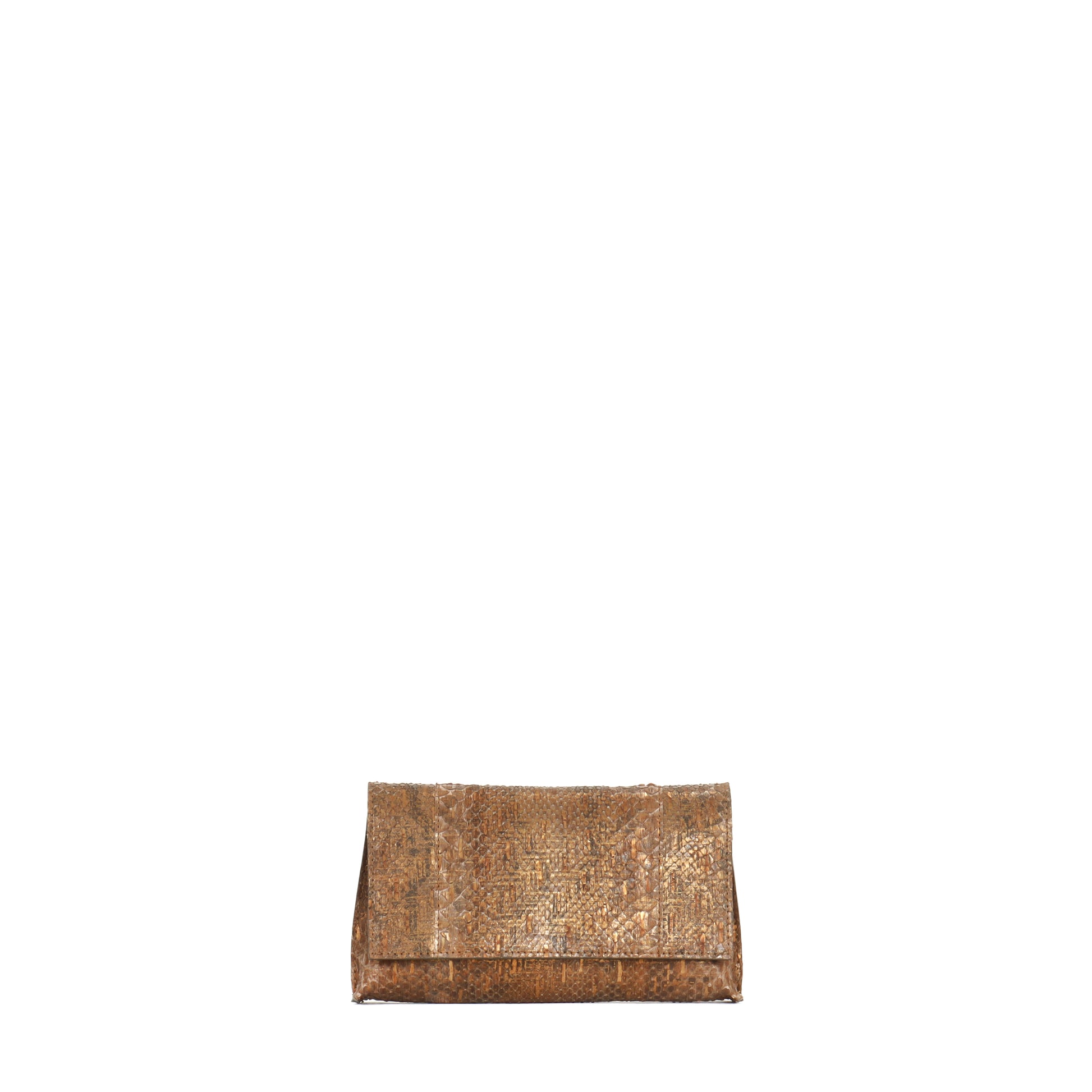 SMALL FOLDOVER CLUTCH BRASS WEAVE PYTHON