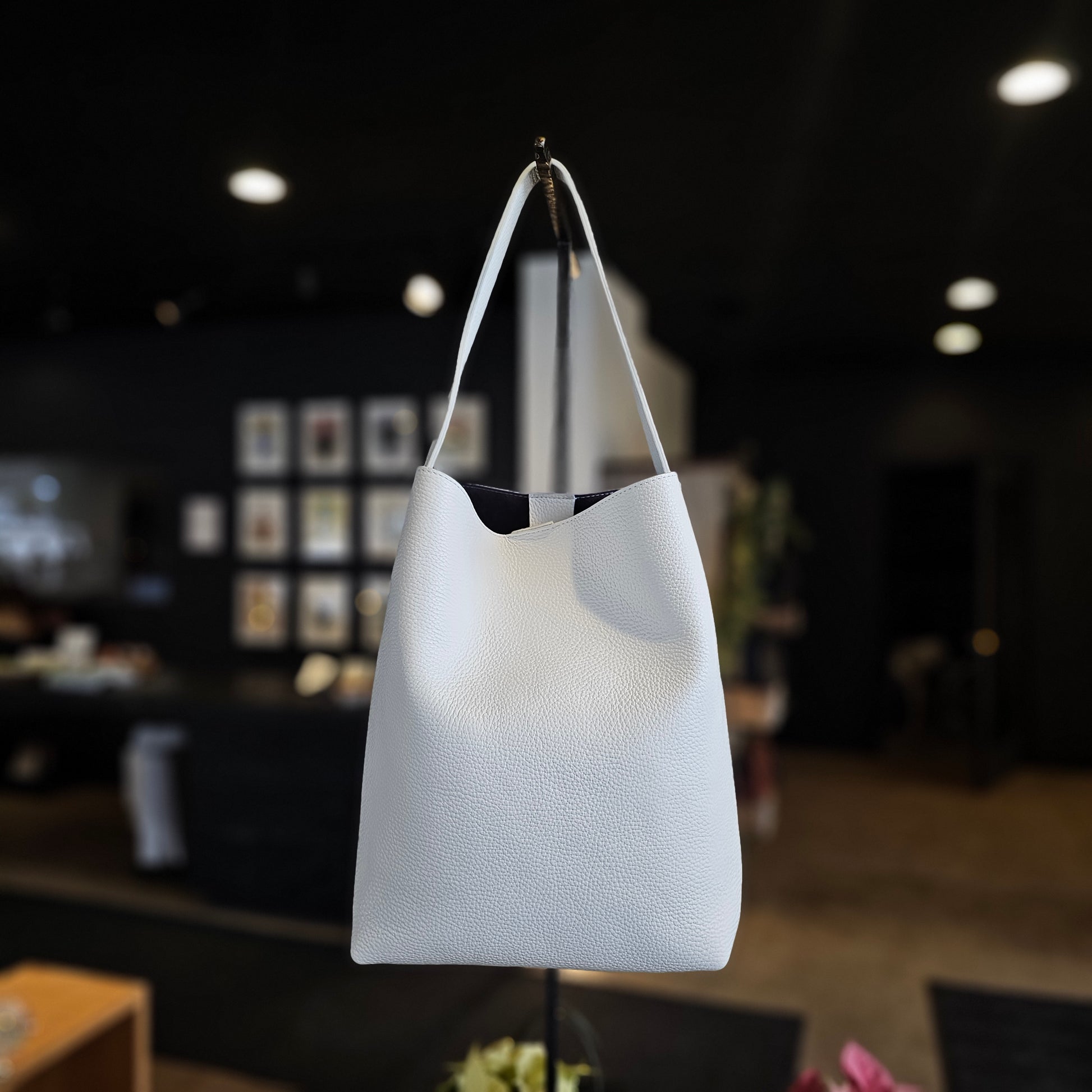 SMALL HOBO SNOWY WHITE PEBBLED CALF