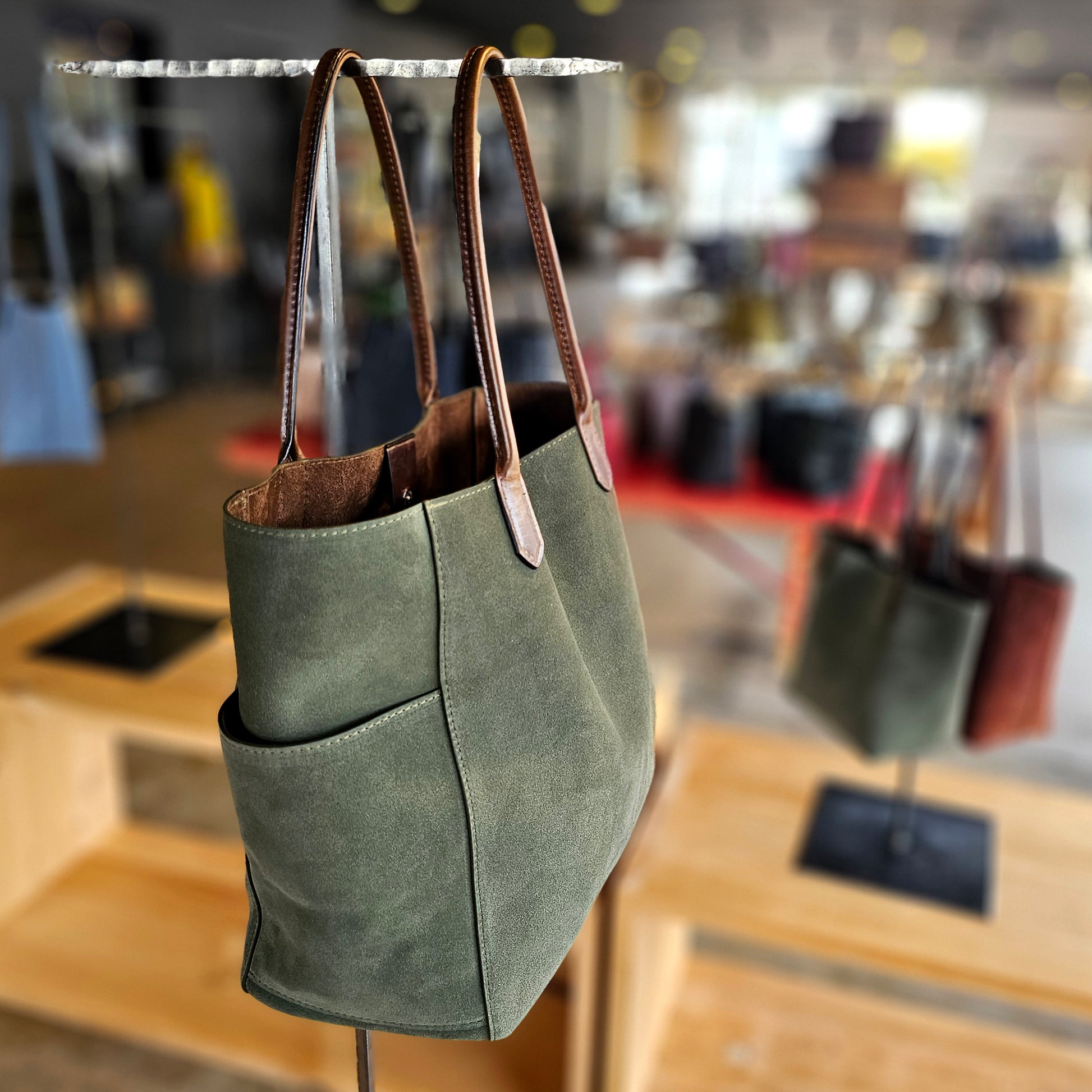 SMALL SLOUCHY POCKET TOTE POPLAR SUEDE