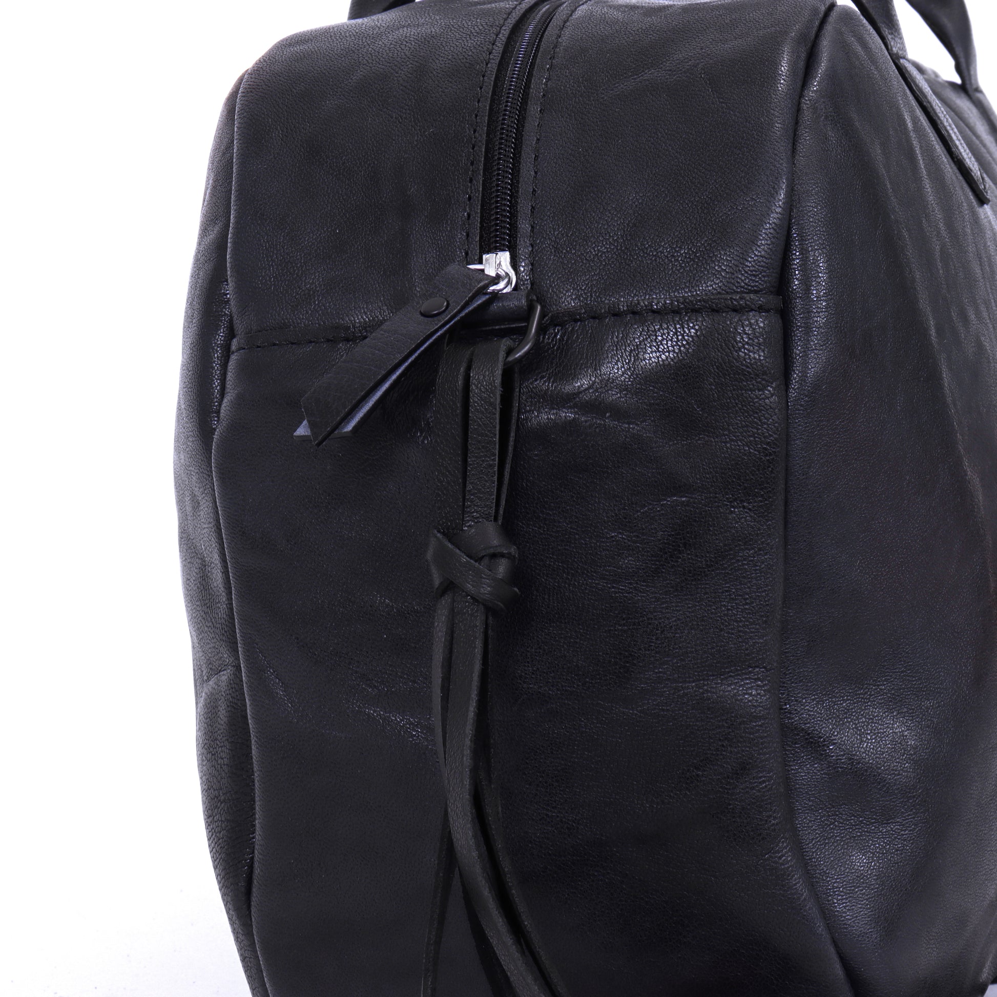 - Belted leather handles
